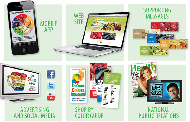 The mission of The Colors of Health® is simple and clear…help get Americans to the 5 Cups a Day goal for better health. Success will be determined based on measurable gains in per capita consumption of fruits and vegetables…in all their forms. Success will also be measured through the economic impact, and the benefits for many business and public health interests resulting from a doubling of fruits and vegetables consumption.