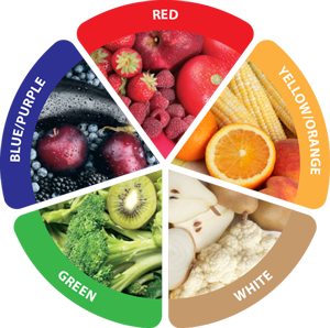 The key strategy in The Colors of Health® initiative is daily, active engagement through color. The well-publicized, science-based, 5-color guidance system, developed by the founders of The Colors of Health®, The Color Way forms the mechanism that guides consumers in shopping for, and eating, a colorful variety of fruits and vegetables. The variety in the 5 color groups (red, yellow-orange, white-brown, green, and blue-purple) signals the full spectrum of nutrients, vitamins, minerals, and colorful phytochemicals that are necessary for daily nutrition and long-term health. It is almost impossible to eat something from each of the 5 color groupings without increasing variety and quantity.