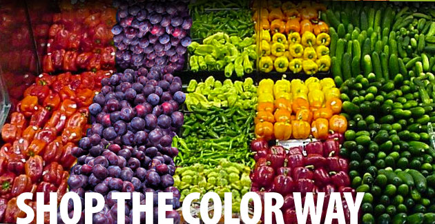 Shopping for a household? Challenge your kids (or your spouse or your roommate) to find just one fruit or vegetable from each color group to put in your shopping basket. It’s a fun way to expand the palette—and the palate—and put more colorful variety on your plate.